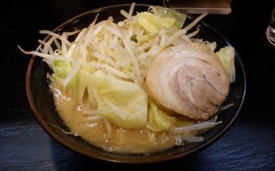 麺はコシというか歯ごたえが強いゴワゴワ麺。しかし、スープが豚骨ベースに醤油の風味が少なめなので、二郎というより平松屋に近い感じ。臭みはなく、少しトロみがあるスープは、なかなか美味しいですが、ちょっと脂っぽい感じです。チャーシューは柔らかくてこれまた脂っぽい。