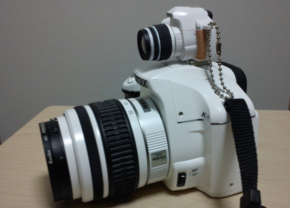 K-x の上に K-r を乗せてみました。ホットシューに乗せるアダプタが付属しているので、乗っかります♪