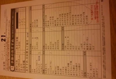 こんな紙にオーダーを記載します。私のシートは、店員が説明に使ったのでなんか色々書かれてしまっています。