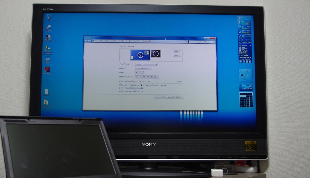 最近 PC で動画を見ることが多いのですが、やはりノート PC の小さめな画面じゃちょっと迫力に不足する・・・そんな小さな不満を持っていました。我が家の TV は Sony の BRAVIA。DSUB15 な RGB 入力は持っていますので、ThinkPad と接続することはできます。が、解像度が低いところまでしかサポートされていないのと、16:9 のアスペクト比でうまく出力できないという問題が・・・