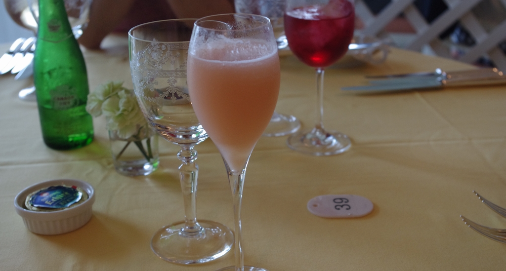 ランチコースは4000円程度からスタートで、色々とオプション追加が可能です。ドリンクは Aperitif Peach カクテル。ノンアルです。濃厚なピーチの感じに、微炭酸とライムのような柑橘系の酸味があって、口直しにちょうど良かったです。