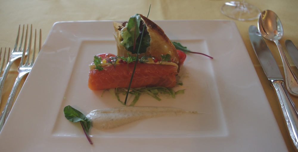 前菜は「タスマニア産オーシャントラウトと帆立貝のタルタル カネロニ仕立て」をチョイス。トロトロっとした食感が良い感じです。一切れのっていたガーリックトーストが美味しかった・・・もっと欲しいですね~これ。