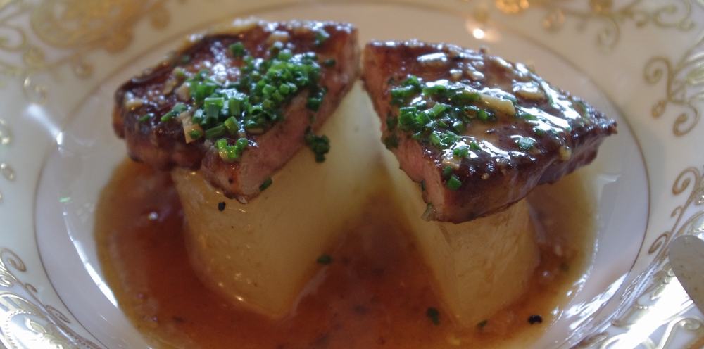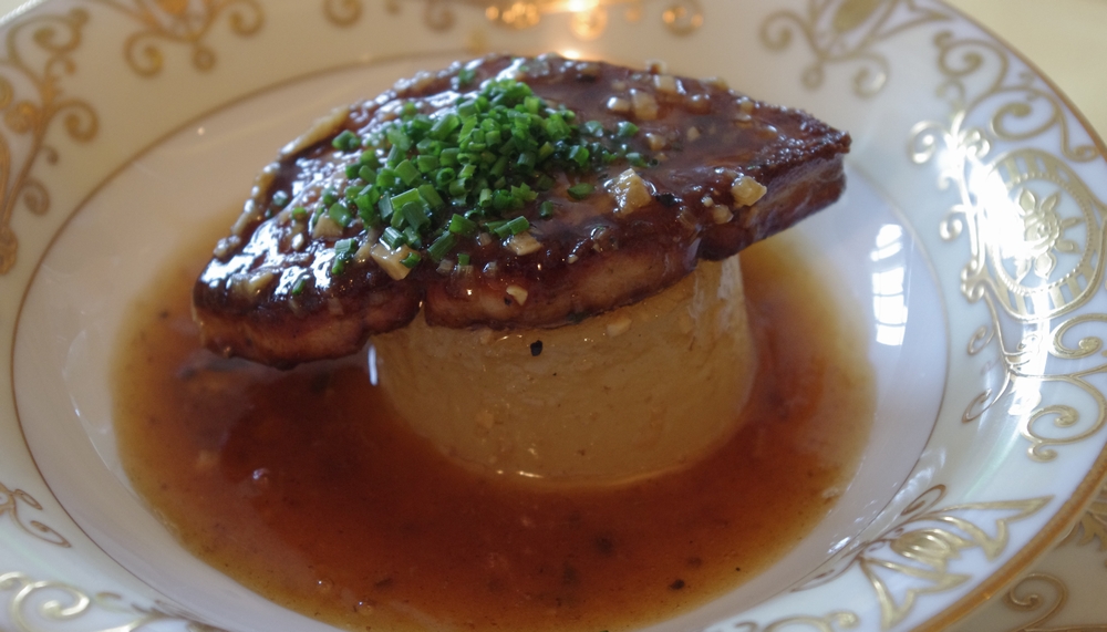 コース外のスペシャリテとして注文したのは、「フォアグラのソテー 大根添え」+1,500円ですが、濃厚なフォアグラが大根の上にドドーンと乗っております。
