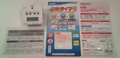 こちらは先日購入して既に実戦配備中のデジタルプログラムタイマーPT50DW。Y栗氏とおそろいで Amazon で購入しました。メーカーの紹介はコチラ。