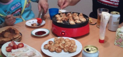 私が PC のセットアップをしている間に、ダンナと娘はタコヤキ作成中。
