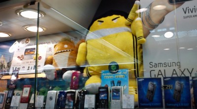 ソニエリは未だに X10 シリーズと X8、W8 が置かれています。新しいものとしては Play と arc、neo 位でしょうか。上の写真で一番気になるのは、X10 (中央の白いヤツ)に 2.3 と書かれたドロイド君が張られていること!!