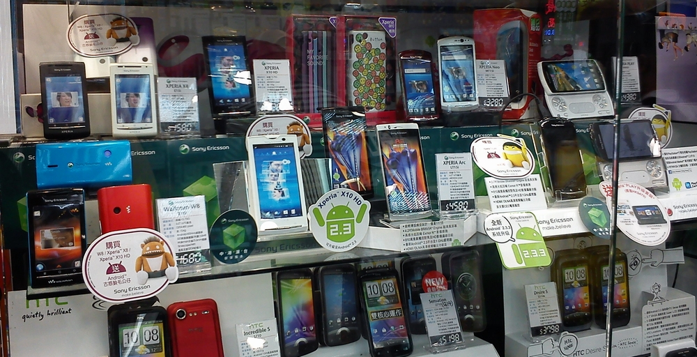 続いて先達廣場へ。こちらは携帯電話を販売するお店がたくさん入っています。二手と書かれた中古品(Second Hands の意味らしい)も取り扱うお店も多いです。路面店よりも価格は安く、お店によって提示している価格もマチマチです。・・・が、この辺りの事情については後ほど・・・