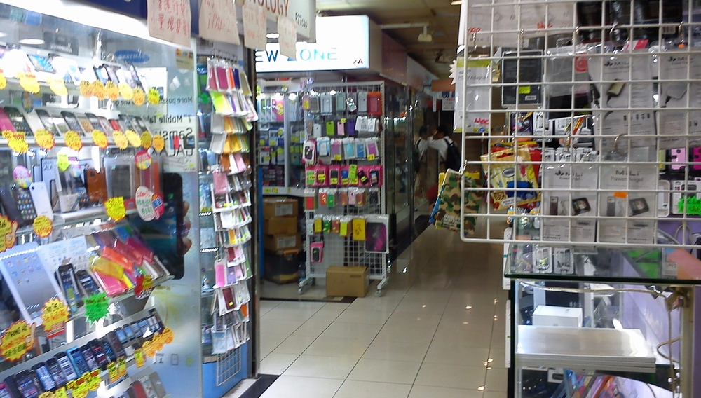 旺角電脳中心(Mong Kok Conputer Center)はスマホ関連の周辺機器や、デジカメ周辺機器などを販売する小さな商店が大量に入っています。とはいえ、午前中に行ったもんだから、人も少ないしお店も結構閉まっています。この手のお店を見るなら午後ですね・・・