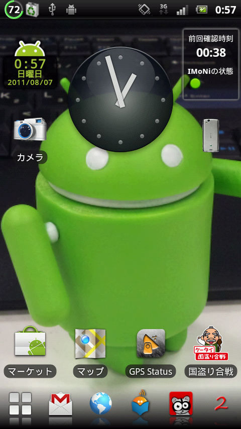 そんなわけで、Defy と2台持ち(笑)。使うアプリをそれぞれの端末に振り分けます。すると、結構終了しないでスムーズに使えます。っていうか、電池の消費も2倍(いや、テザリングしているからそれ以上か・・・)、決して良い方法じゃないですよね・・・なんか、良い方法ないかな・・やっぱりカスタム ROM かな?
