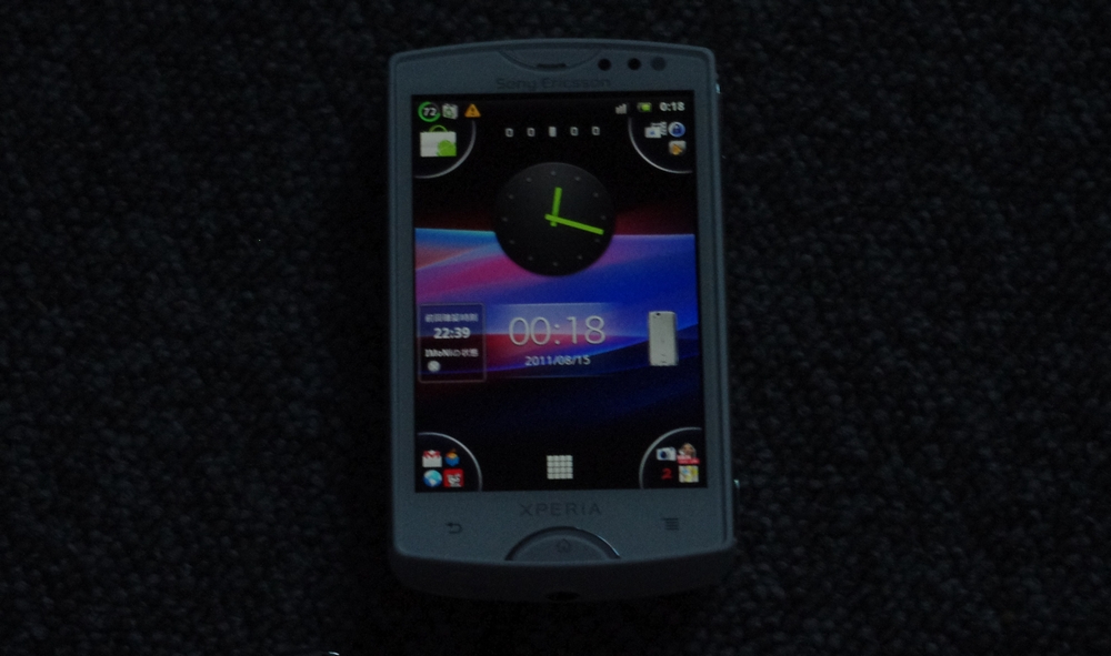 そして、最後に苦言をひとつ。通知用の LED が画面がある正面になく、上部の電源ボタン横にあるので、机の上に置いておくなどしていると、通知に全然気づきません!! 胸ポケットに入れても、ストラップの関係で、下側が上に来るようにポケットに入るので、これまた全く見えません・・・これは明らかな設計ミスですね。Xperia mini pro はちゃんと表面上に LED があるので問題ないようですが、mini だと何かしら工夫が必要ですね。モトローラみたいに、戻るボタン、メニューボタンのバックライトを通知用に点滅させるようにできないかな・・・