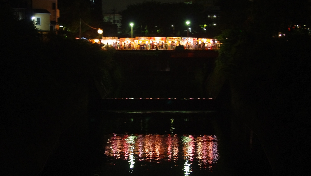帷子川にかかる橋の上にも夜店が出ております。