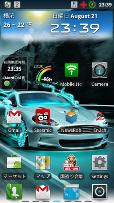 色々アプリもインストールして、準備完了。bmobile SIM U300 での通信も OK。今回は、アンテナピクトは表示されないけど、H マークな通信アイコンが出現。