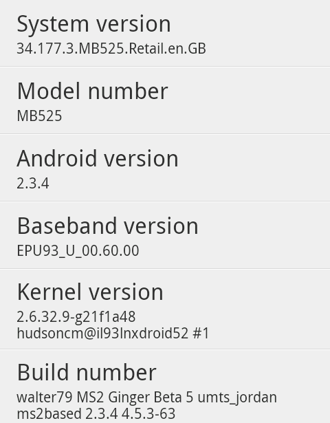 今回試してみたのは、xda にて展開されている MS2Ginger。なんと、Motorola Milestone 2 の 2.3.4 の ROM をベースに Defy で使えるようにしたものだそうです。Milestone 2 ベースだと、Blur も最新ベースだし、カメラも 720p 動画撮影にも対応しているらしいということで、色々と期待できそう。なにより、Defy では NG だった Mobile Hotspot と bmobile での AGPS に期待。
