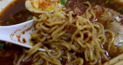しかし、しょうゆベースのスープの旨さも程よく感じられるし、魚介(たぶん蟹!?)の風味も感じつつ、美味しいなぁ・・・と汗も少しだけという私は、既にダメな方の味覚の持ち主のようです(笑)。細めのちじれ麺もスープと良く絡むし、チャーシューも柔らかい(後半に食べたので、味は自信ないけど、結構美味しい部類のチャーシューと思われます)。