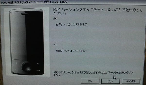 事前に ActiveSync で PC と接続しておきます。私の Diamond は最も古いバージョンだったようです。