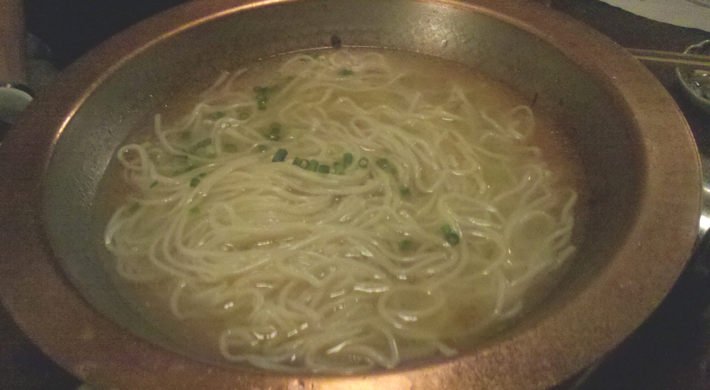 〆は雑炊かうどんをチョイス可能。「五島うどん」にしました。