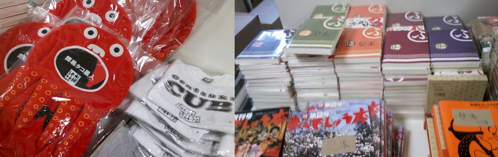 最新作のネタバレTシャツ。とある女性客が、連れに対して「あれ、ネタバレだから見ない方がいいよ!!」とマジで制止していたのを見て、思わず苦笑。そうなんです。最新作のカブの旅は首都圏ではまだ放映されていないのです。アクトビラで見た人や、ゴニョゴニョとアレして見た人しかいないのです。なのに、堂々とネタバレなグッズが並んでおります・・・イイのかな!?