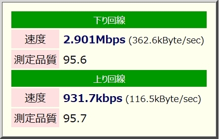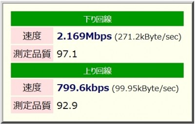 こちらが WiMAX での結果。ADSL よりも高速です。が、スペック的にはもっと高速でもよさそうなんだけどな・・・