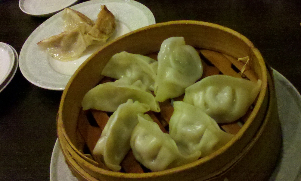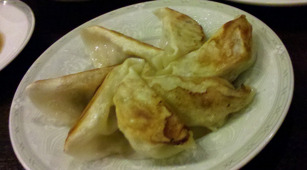 最初のオーダーから漏れてしまっていた蒸し餃子。焼き餃子を追加して、あっという間に紹興酒が無くなり、この日は終了!!