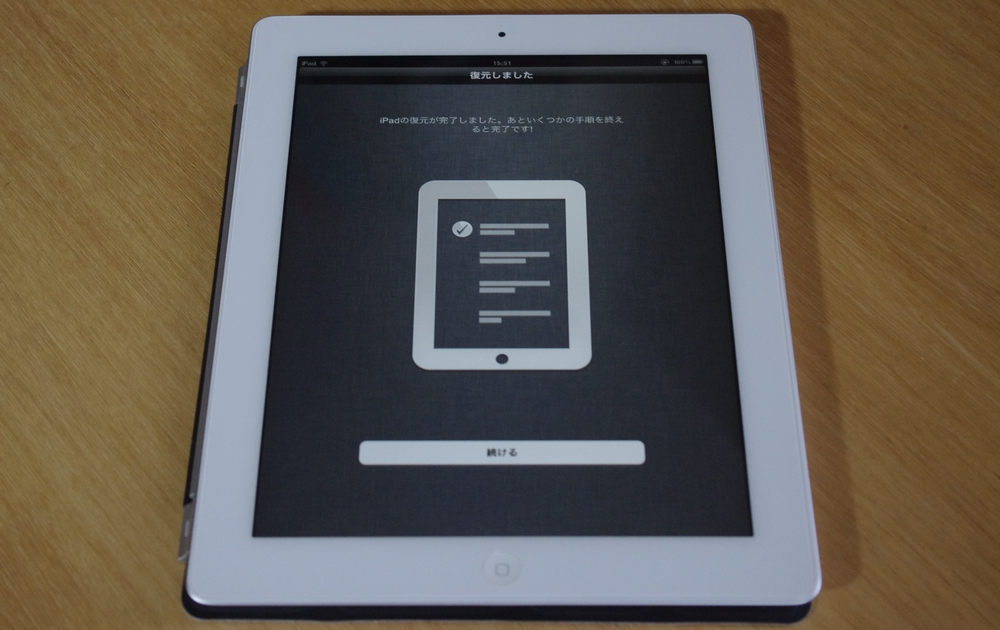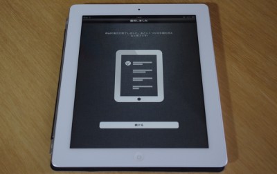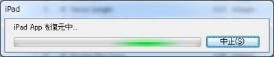 書き換えをして、バックアップから復元しています。何度か iPad2 のリブートが入りましたが、基本、自動で進行。