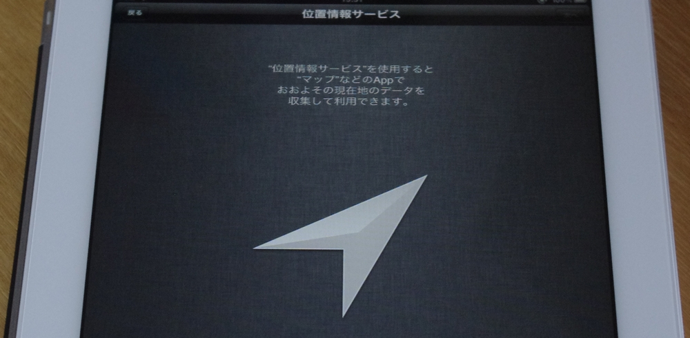 位置情報サービスの設定。私の iPad2 は WiFi モデルなので、GPS ないんですけどね・・・WiFi 経由でも取れるし、一応 ON にしておきました。