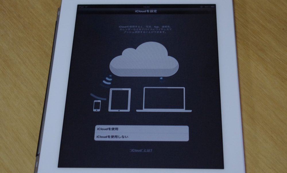 続いて新機能な iCloud の設定。まぁ、iOS デバイスは1台だけだし、Mac も持っていないので、使わなくてもいいのですが、バックアップの意味も込めて有効にしてみました。