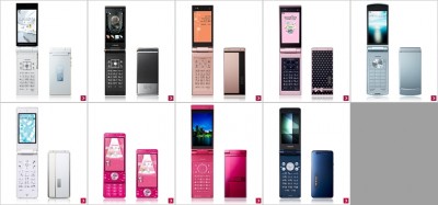 ガラケーもまだまだ頑張ります。富士通4機種(F-02D、F-04D、F-06D、F-06D Girls’)、NEC が2機種(N-02D、N-03D)、パナ1台、シャープ2台(SH-03D、SH-05D)。全部で9機種もあるのが、ドコモっぽいですね。でも、特徴とか全然無くって・・・まぁ、どうでもいいや。