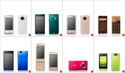 with シリーズは、カジュアルタイプな Android 機。左上から右に向かって、富士通の女性向け、映像重視な東芝、富士通のコラボ、シャープな Q-pot コラボ、シャープの AQUOS、シャープのテンキー、パナの LUMIX、パナのコンパクト。いずれも、ガラケーユーザーの乗り換え向けってな感じで、全く萌えません(爆)。