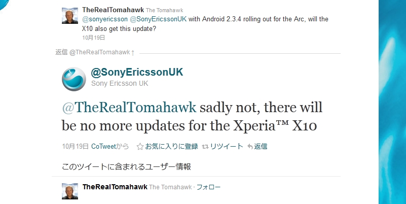 ソニエリUKのツイッターでのつぶやきによると、X10 にはこれ以上のアップデートは無いとのこと。