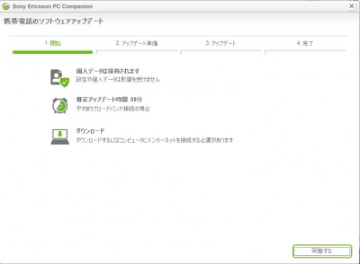 ウィザードに従って、アップデートを開始。データは基本的に消滅しないとのことで、特にバックアップも取らず発進!!