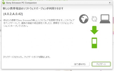 土曜日の昼下がり・・・久々に Xperia mini (ST15i) を母艦に接続したら、アップデートがあるとの通知が来ました。