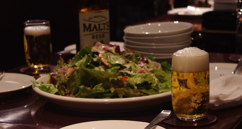 ビールで乾杯。お腹すいていたので、サラダが美味しい!!