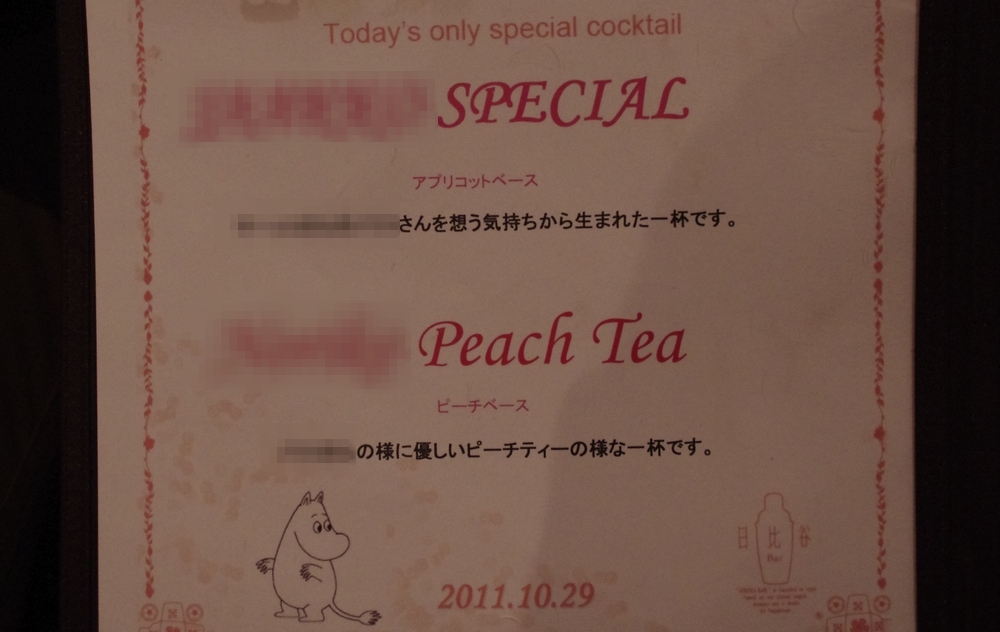 メニューもこの日の限定。スペシャルカクテルが用意されておりました。もちろん両方美味しくいただきました♪