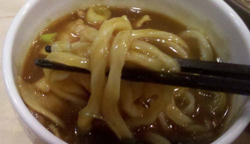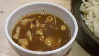 Posted in Foods, ひとりごと 丸㐂屋でカレー肉汁うどん Author: 管理人 Published Date: 2011/11/01 Leave a Comment on 丸㐂屋でカレー肉汁うどん 9月に行った丸㐂屋に再度挑戦。 前回の宣言通り、今回はカレー肉汁うどんをオーダーしてみました。780円です。 今回はうどんの量を「中」にしてみました。 つけ汁は豚肉タップリ。そして、カレーはうどん屋のカレーのように和風の出汁が強いものではなく、ほんのり感じる程度、結構濃厚なカレー。香りが良いです。 うどんに良く絡んで、美味し!! 丼でカレーうどんにするよりも、カレーの風味をシッカリと味わえる。つけ麺タイプにして正解ですねー。 ちょっとお値段高めだけど、結構気に入りました♪ また行くとしよう!! Author: 管理人