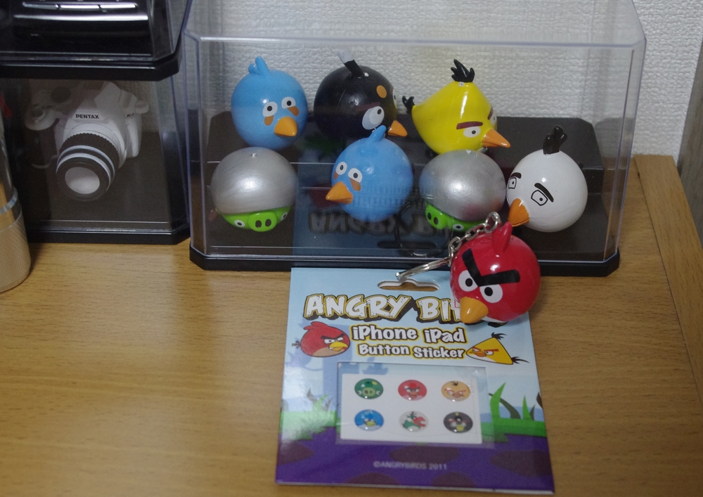 ついでに iPhone/iPad 用のボタンシールも買ってきてもらいました。Angly Birds は5億ダウンロード、総プレイ時間20万年(!!!) という状況らしい。スゴイっす・・・