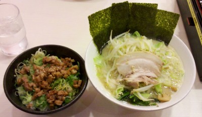 塩豚骨の野菜プラスに、ゴル肉飯をオプション追加。
