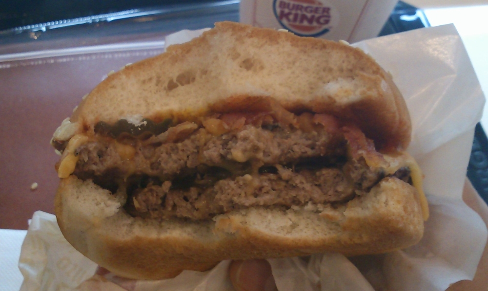 ワッパーよりもこぶりな大きさ。Jr と同じパティが2枚、ベーコンとチーズが入っています。