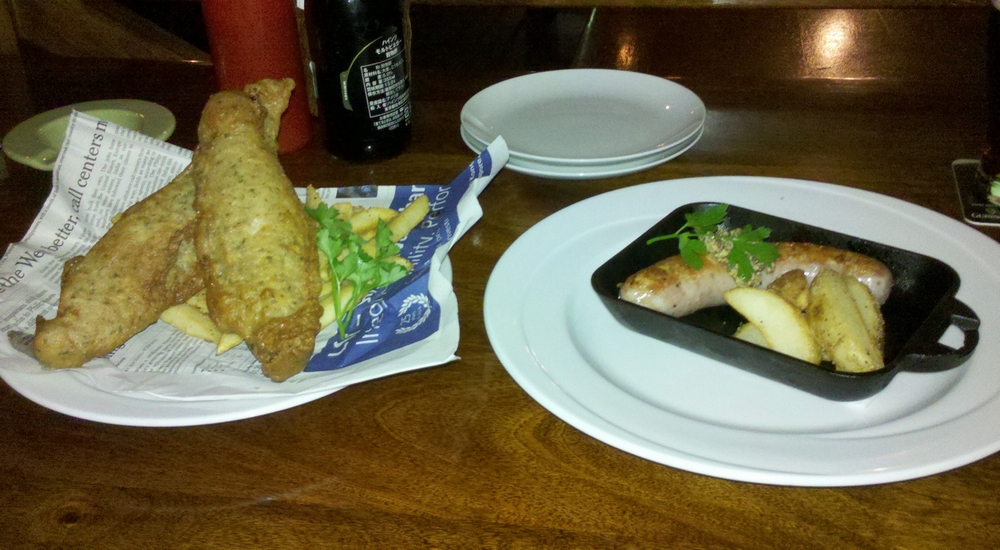 二人ともそれほど空腹じゃなかったので、軽くおつまみだけをオーダー。Fish And Chips はここのお店は結構美味しいです。ソーセージもいい味でした。