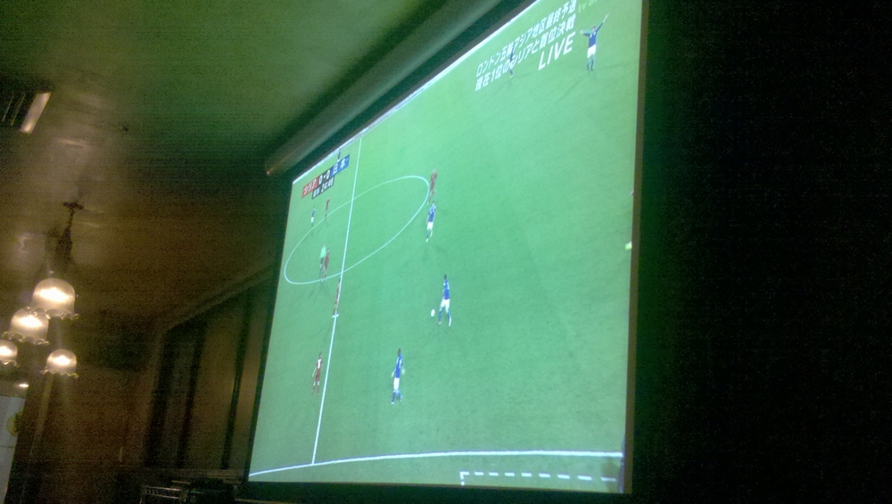 店内は結構お客さんが入って、みんなで観戦。オリンピック予選で大事なホームゲーム。無事 2-1 でシリアを下しました。