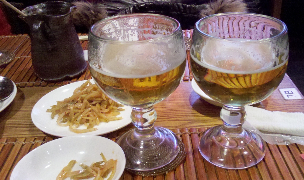 早々に紹興酒に切り替えたY本氏のビールも飲むことに・・・これで1Lのビールです。まぁ、エビスなので美味しくいただきました。