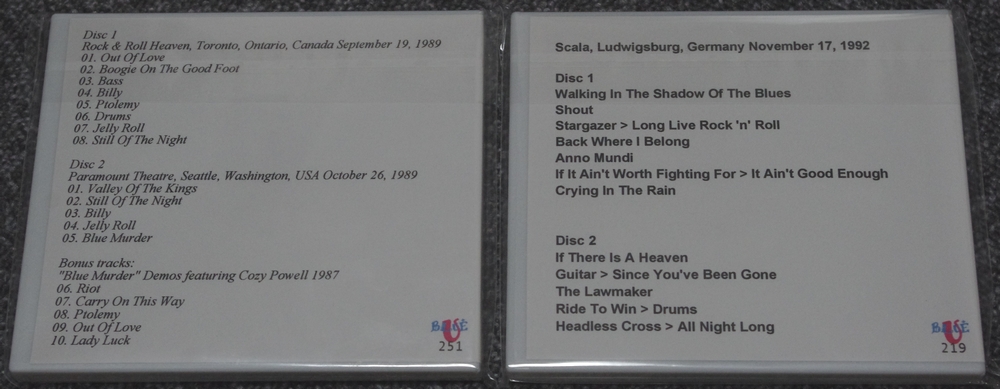 右側は Blue Murder の日本での Live 音源2枚組 CD。1989年の日本青年館でのライン音源ということで、ライブ音源が少ない Blue Murder だけになかなかのレアものです。