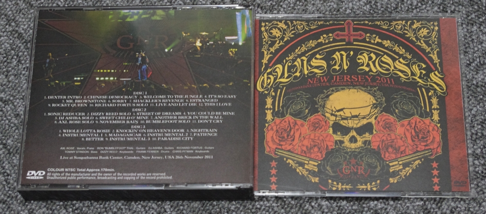 レジにて会計時に「ギフトは!?」と聞かれたので「・・・いや、違います。」と答えたら、どうやらラッピングとかではなく、2枚 CD を買ったらプレゼントをくれるということで、7種類の中から1枚選んで、Guns n’ Roses の Live DVD 3枚組をいただきました。2011年のツアーの映像なようですが、他にコレといったのがないのでなんとなく貰ったもの・・・
