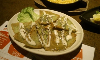 この日の秘密のメニューは、ゴルゴンハニーチップス。サツマイモチップスに、チーズと蜂蜜がかかった、少し甘いおつまみ。女性向きかなぁ・・・