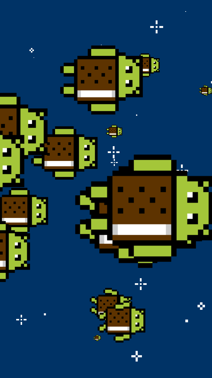 飛びます(笑)。画面左から右に向かって、無数のドロイド君が飛んでいきます!! 胸熱!!!
