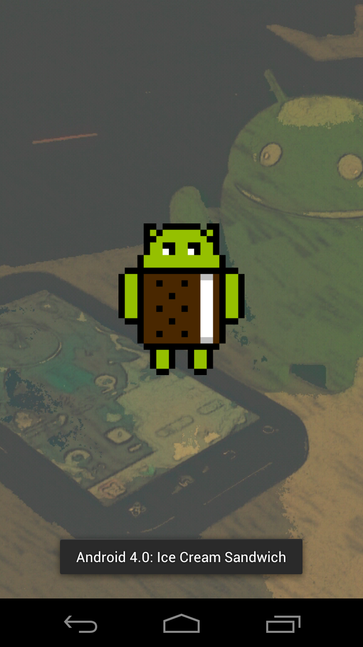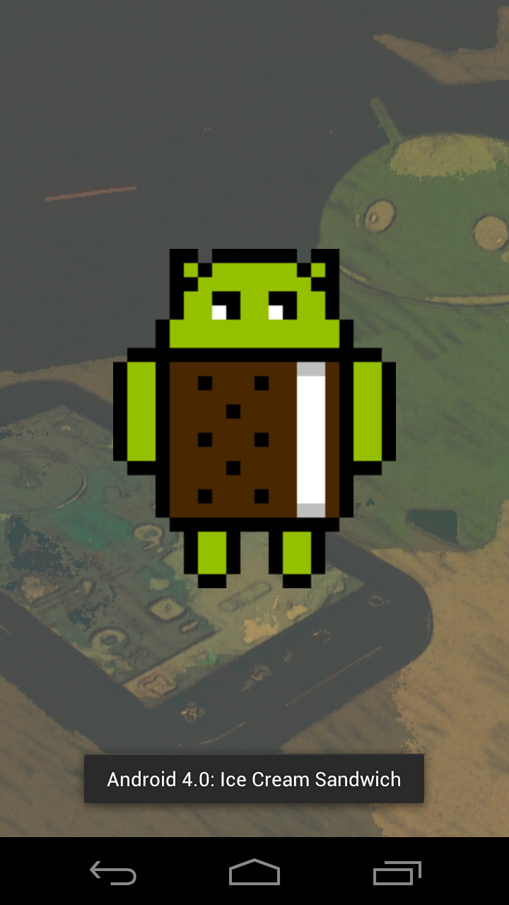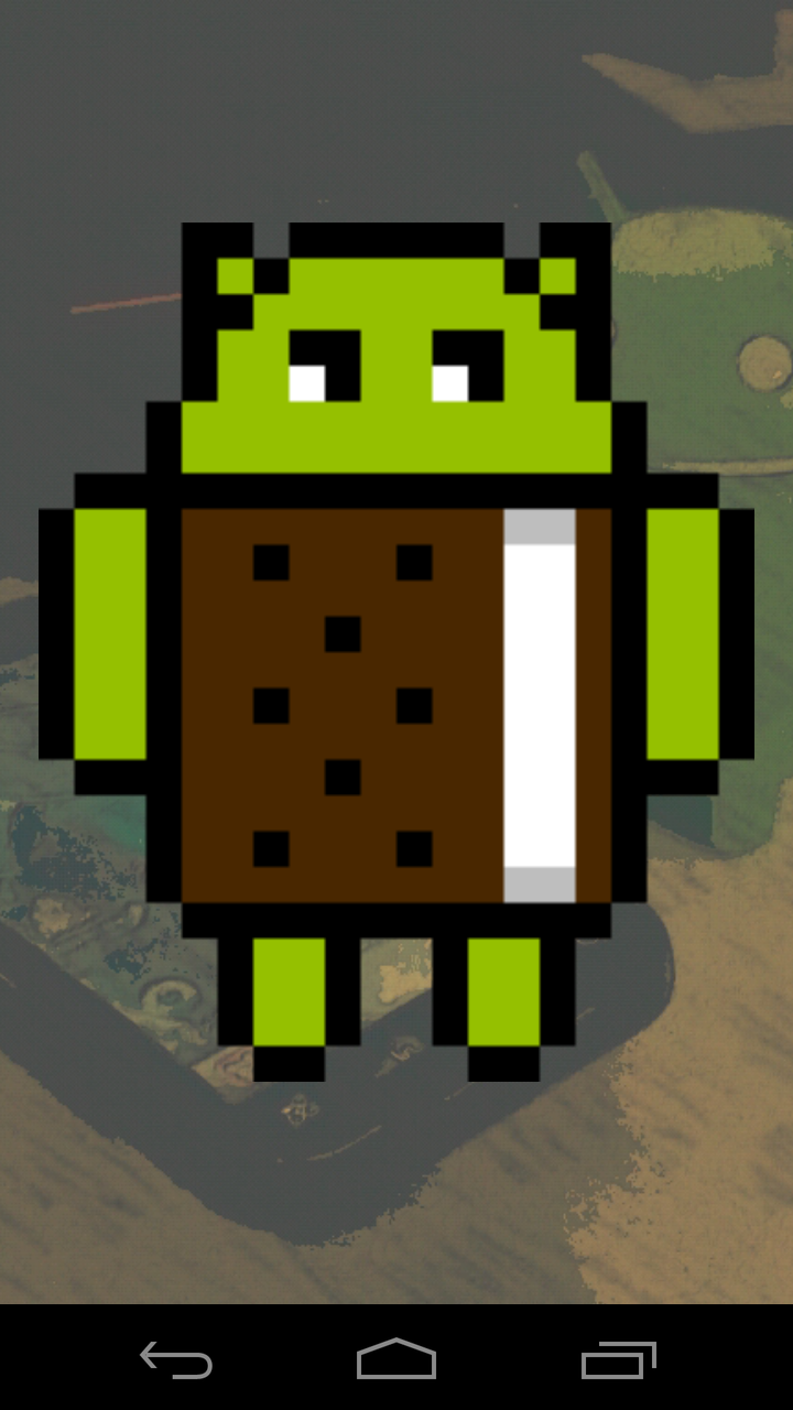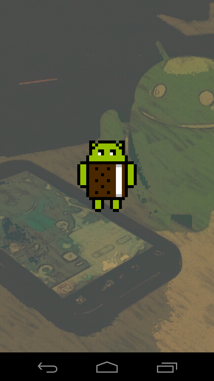 ドロイド君が登場します!! これ、たぶんイースターエッグですよね!? ちなみに背景は私が設定している壁紙。